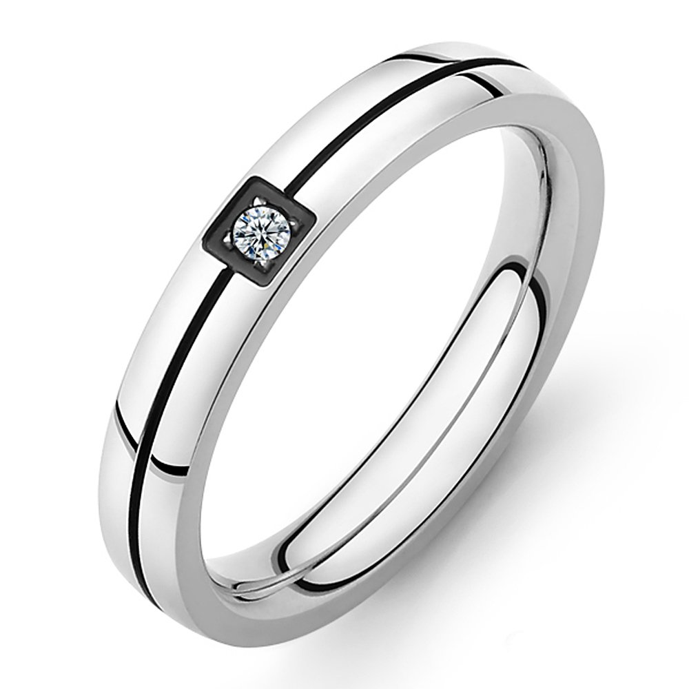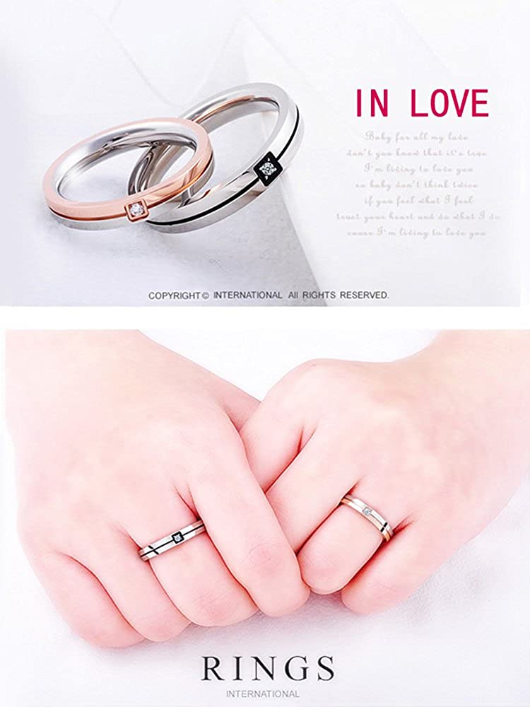 Dazzling Stardust Silver Rose Gold Black Stainless Steel Couple Band Rings for Girls and Boys