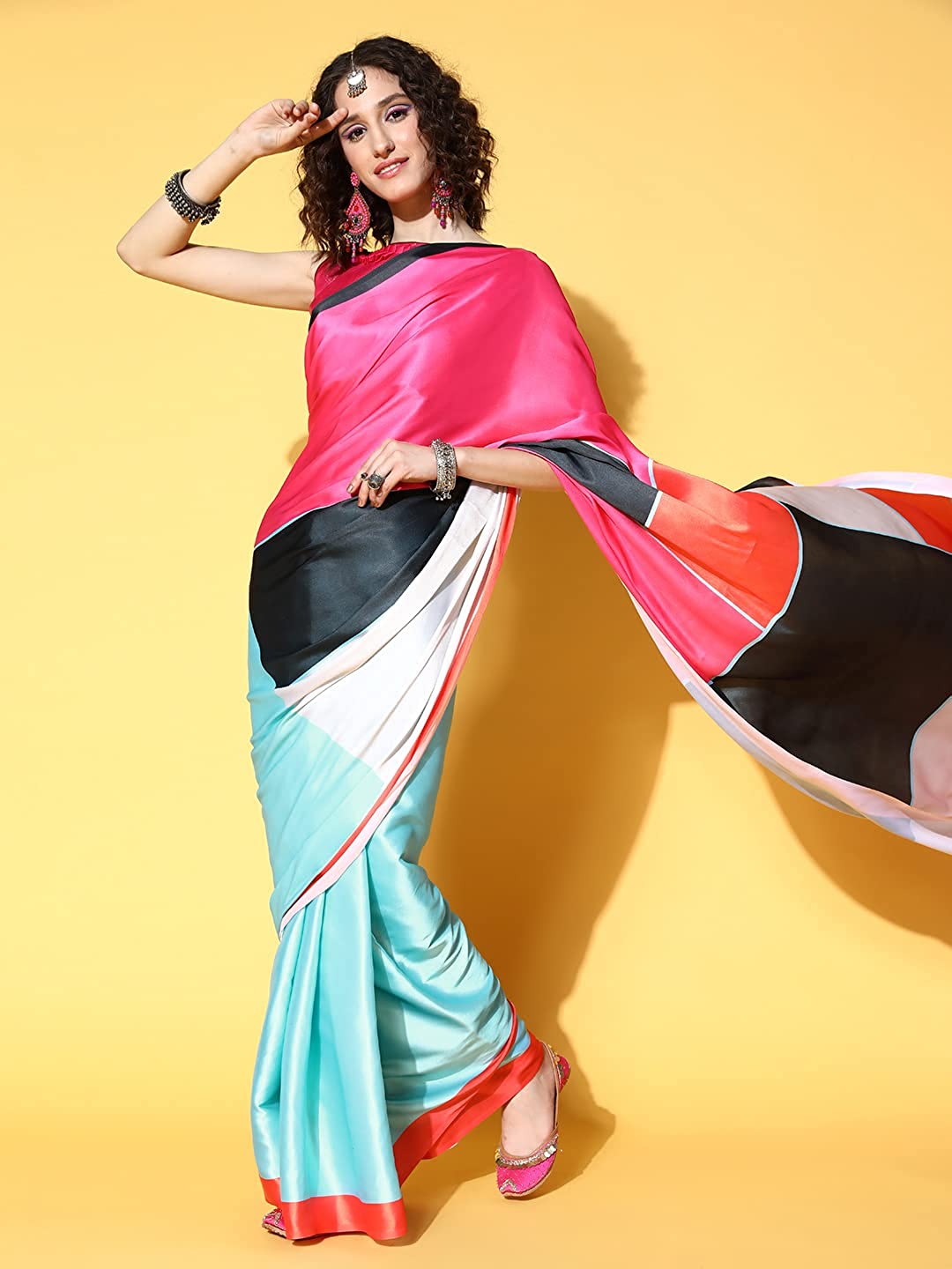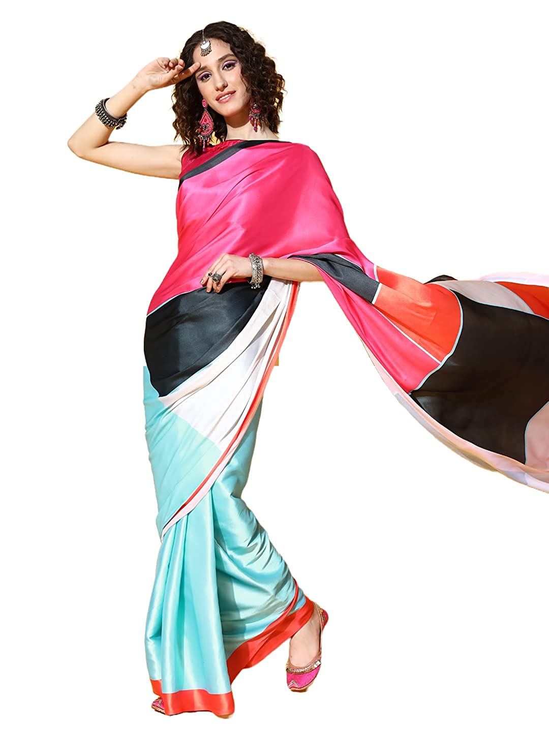 Women's Satin Saree With Art Silk Unstitched Blouse Piece