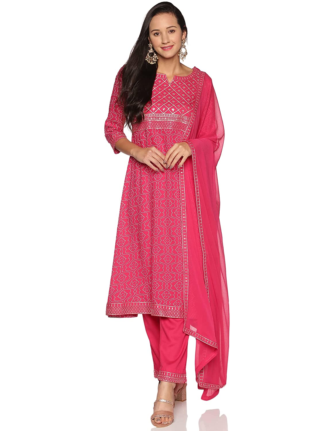 • Fabric :: Kurta and Pant- Rayon || Dupatta- Chiffon; Embroidered Work on Yoke,Sleeve and Pant Border || Chiffon Dupatta Having Embroidery work on Border; Package Contents :: One Kurta, One Pant and One Dupatta