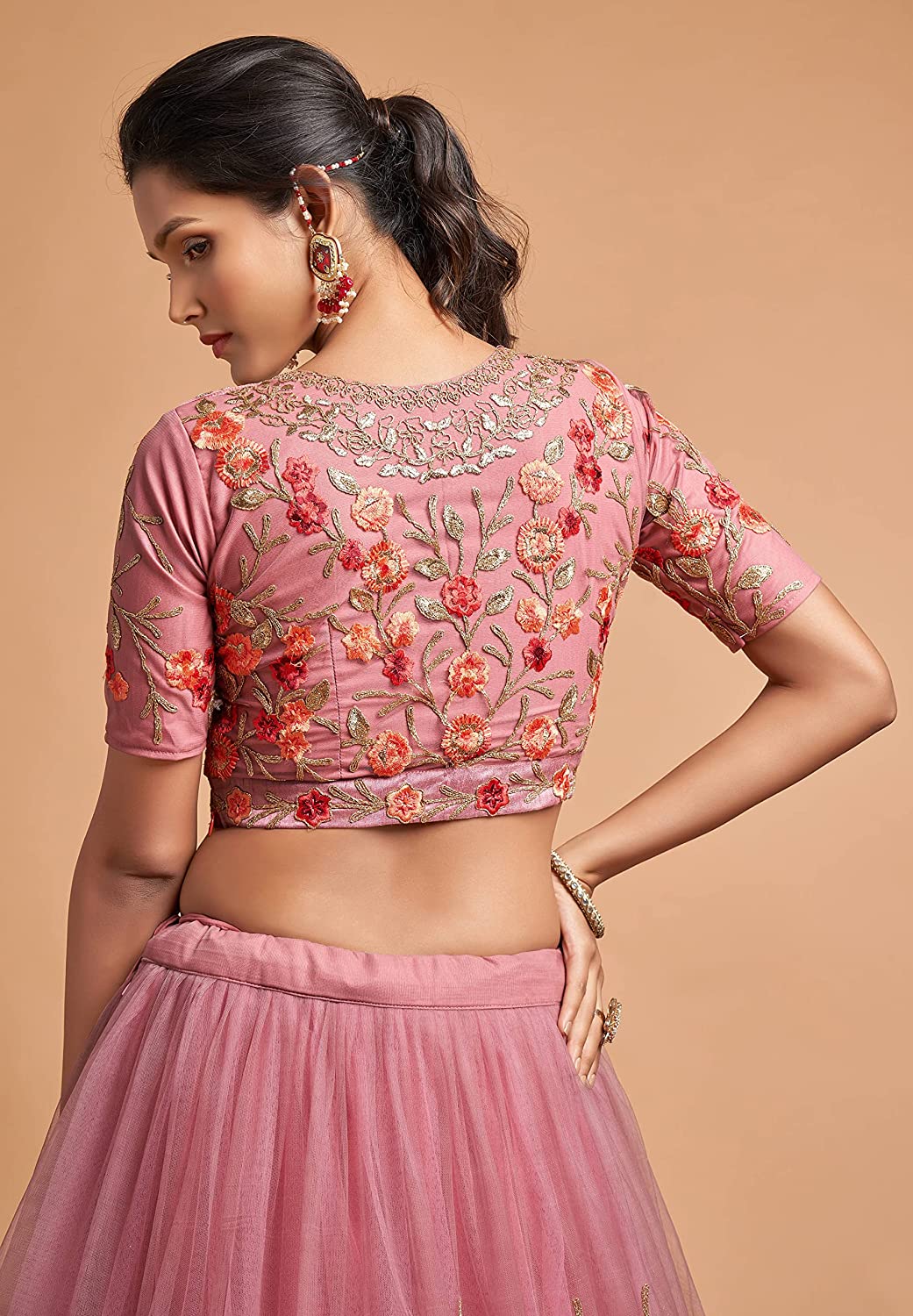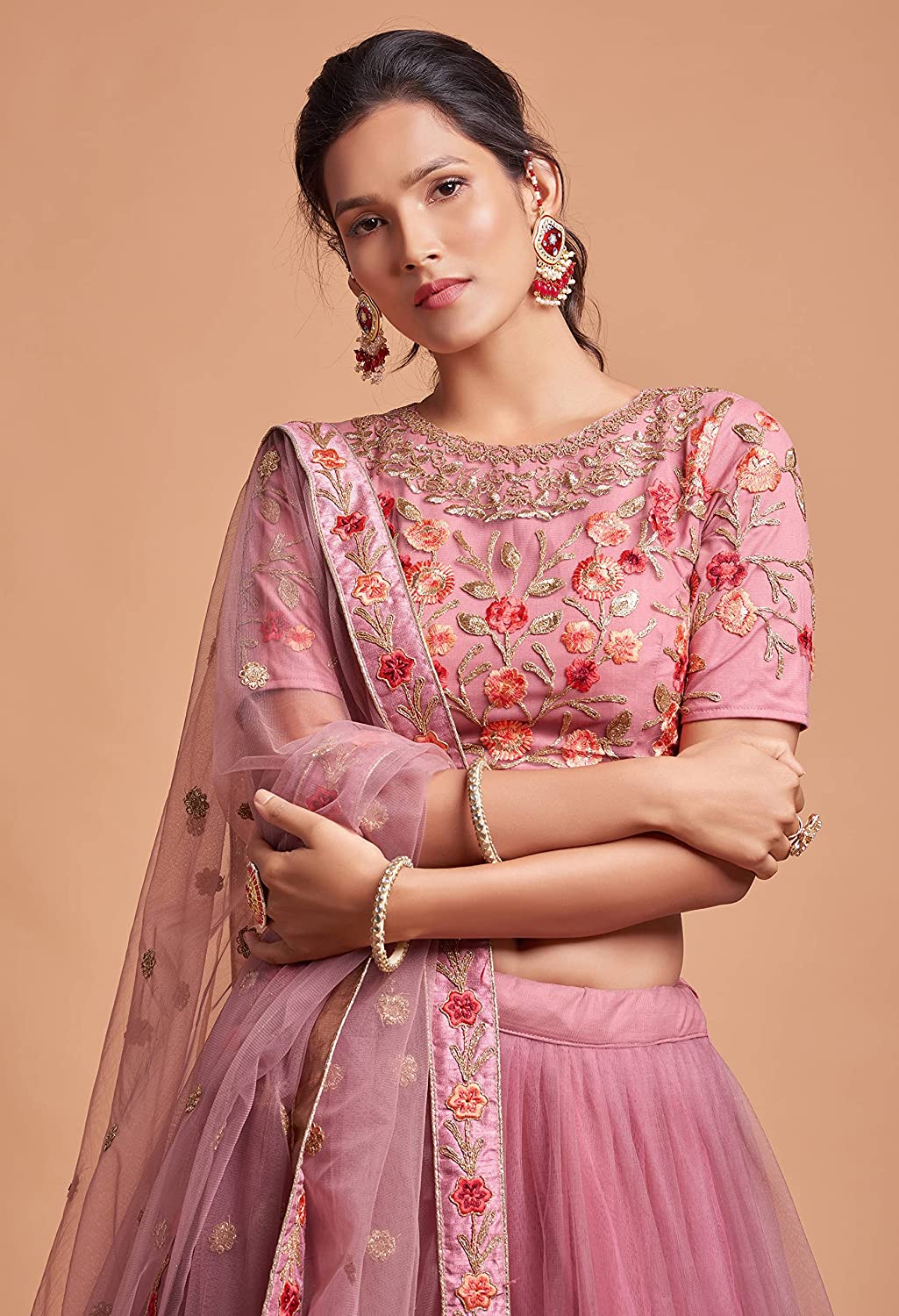- Lehenga Fabric: Net; Blouse Fabric: Net; Dupatta Fabric: Net; Inner: Santoon with Cancan(tulle) layered net