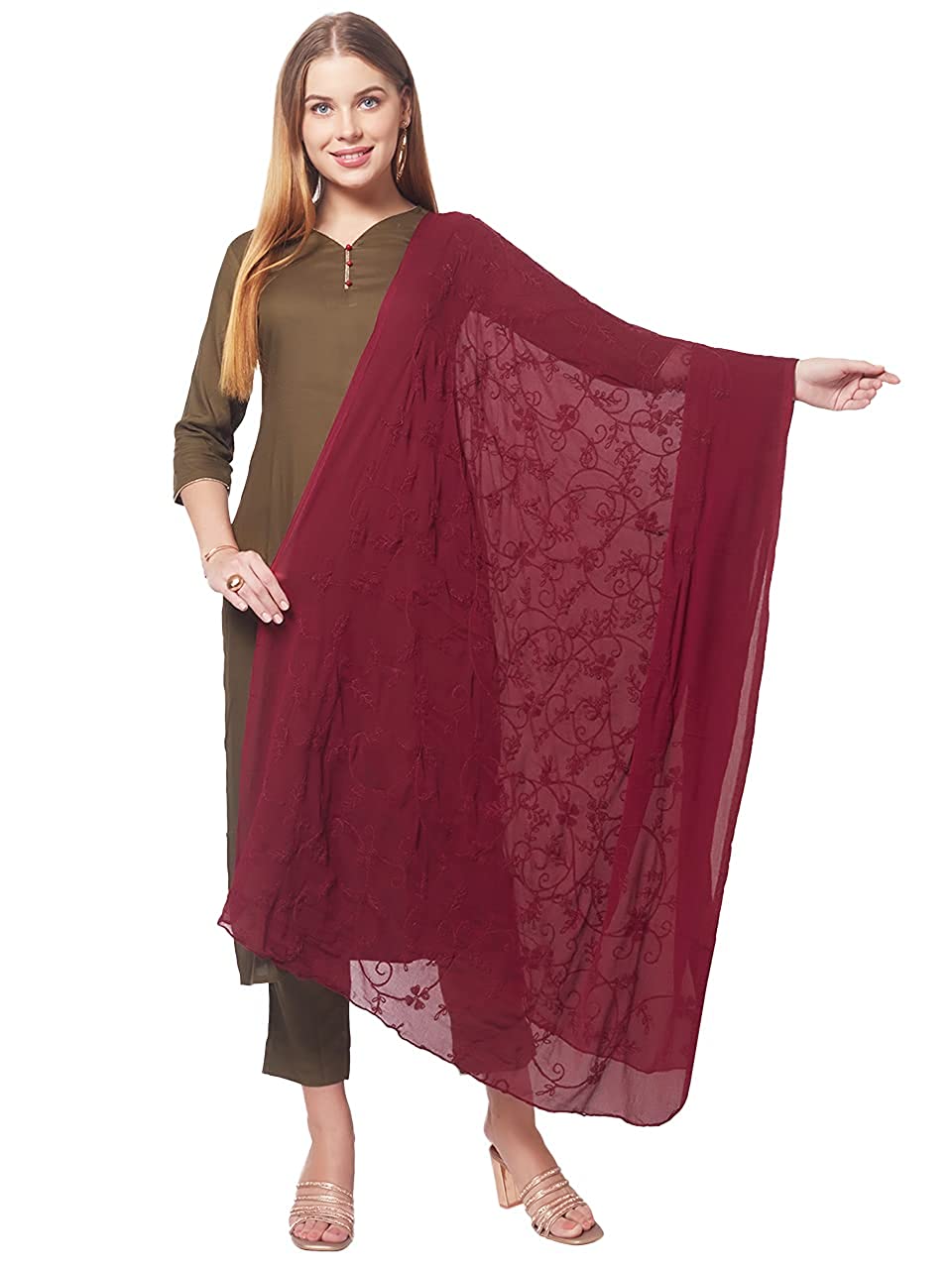 - Soft and regal, this chiffon dupatta features beautiful aari work embroidery all over.