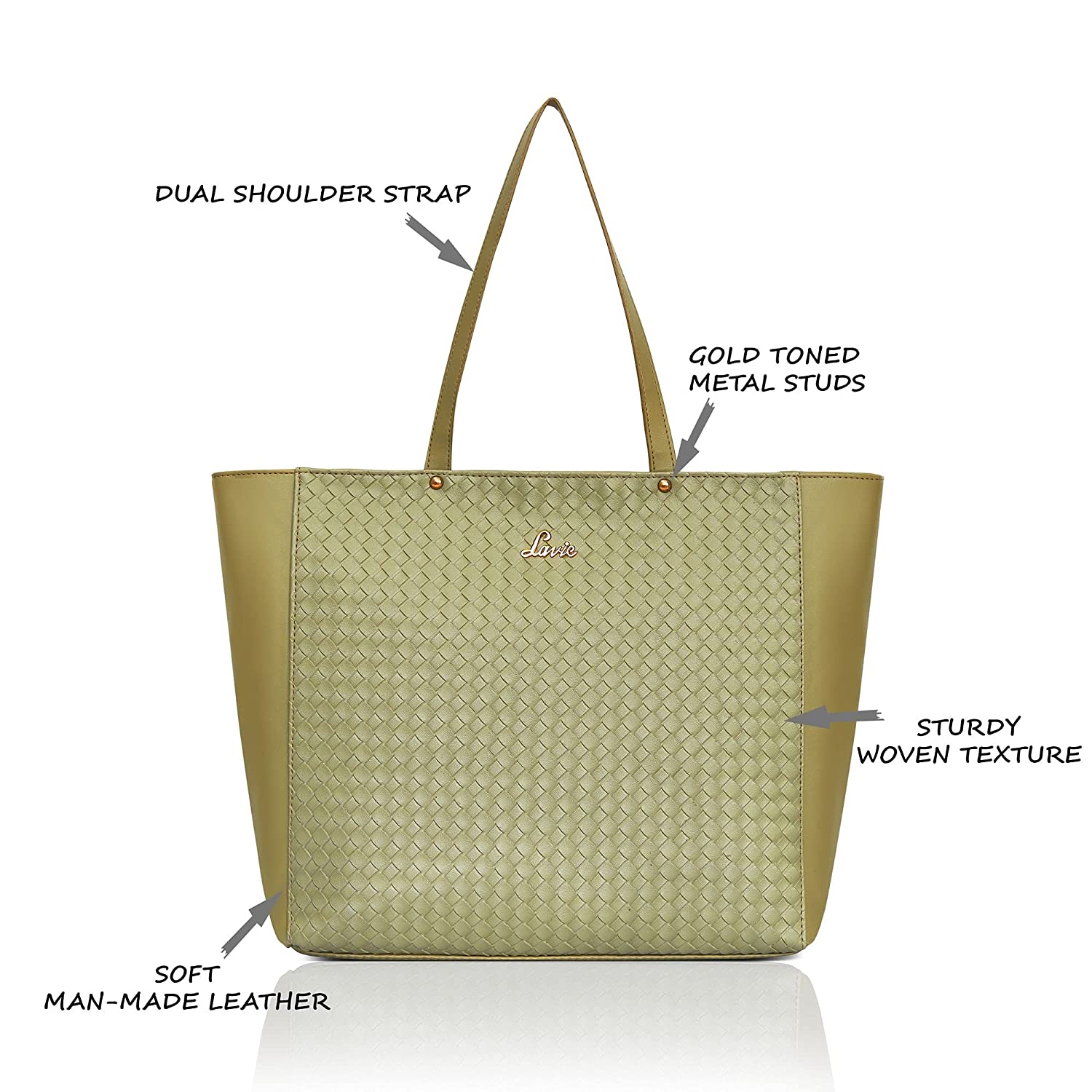 - Lavie Malnov tote is a stylish offering for ladies. It is durable, light weight and super spacious. Made from vegan leather, this large hand bag comes in Herringbone, Woven and Croco texture pattern at the front.