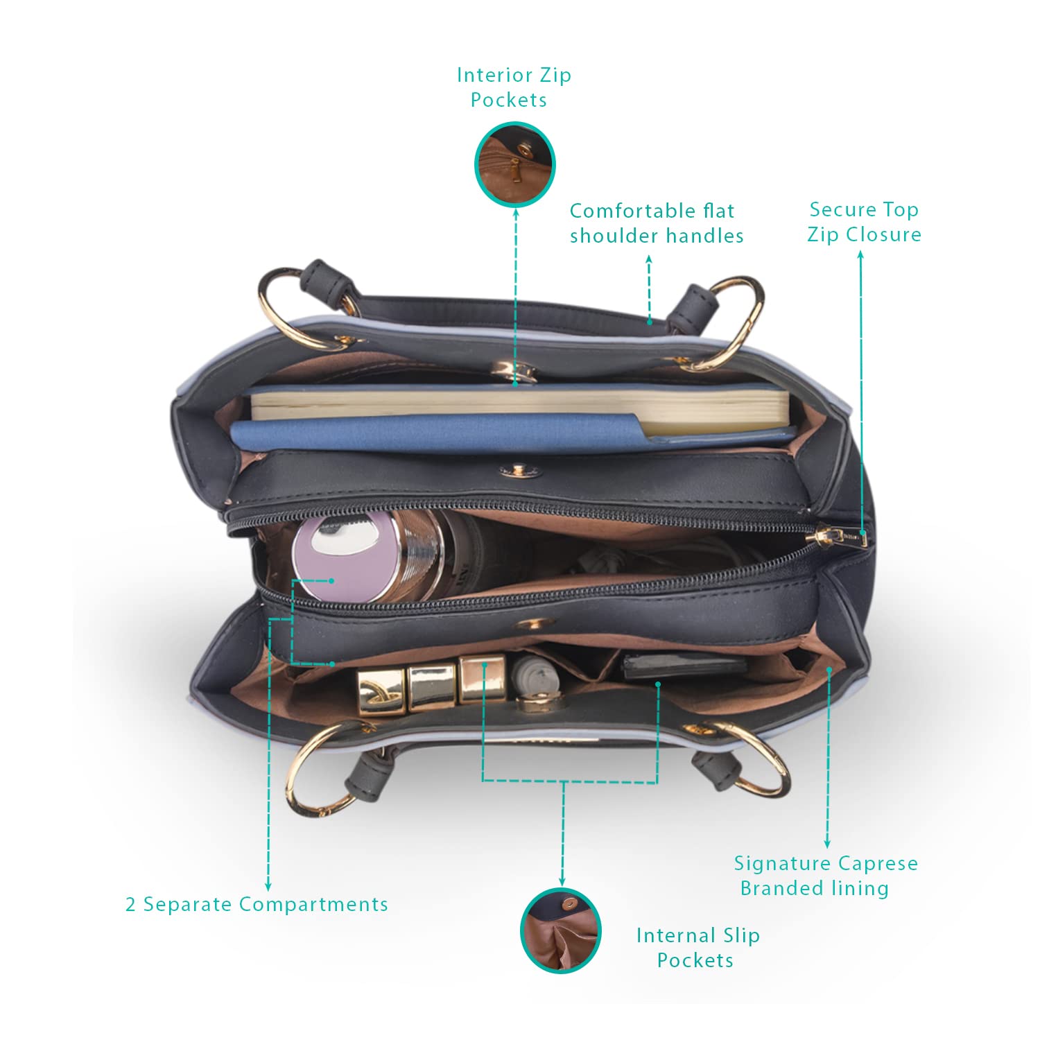 • Material: Faux Leather; Closure: Secure Top Zip Closure