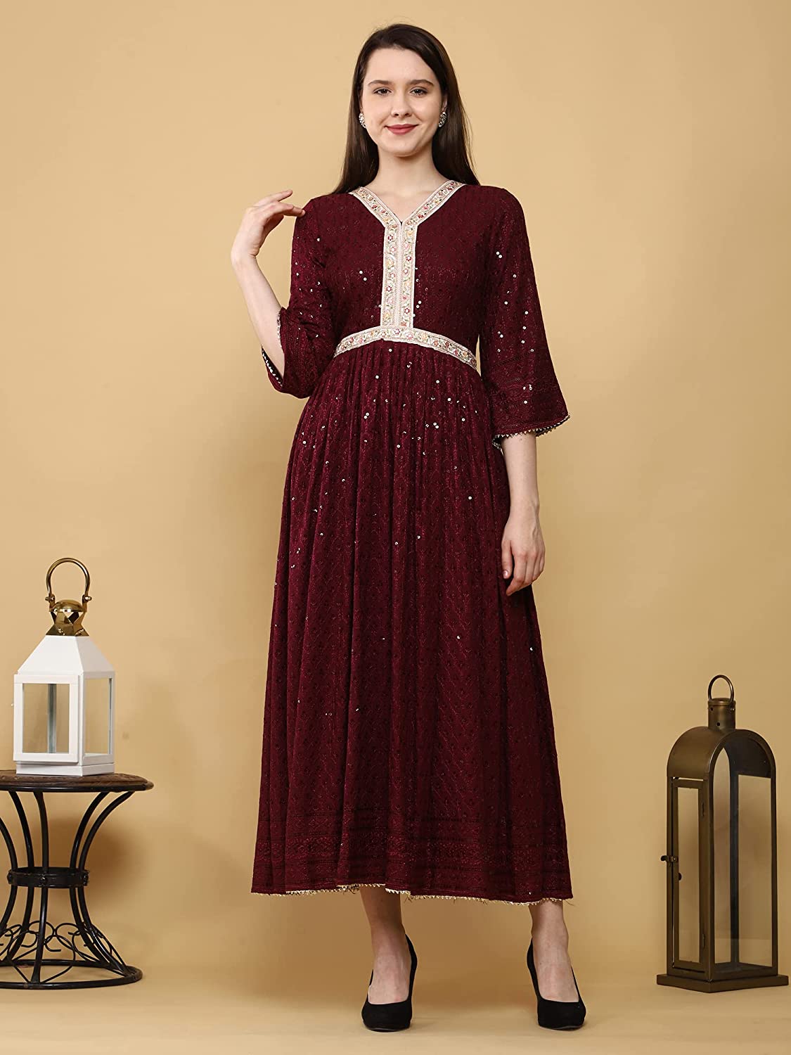 • The Embroidered V neck along with Embroidered beautiful lace on its waist adds to its appeal