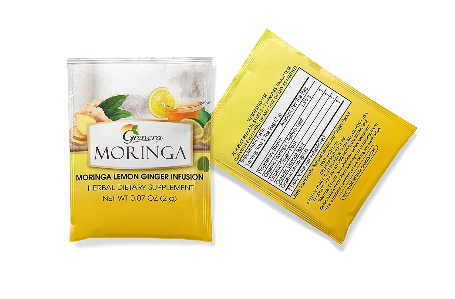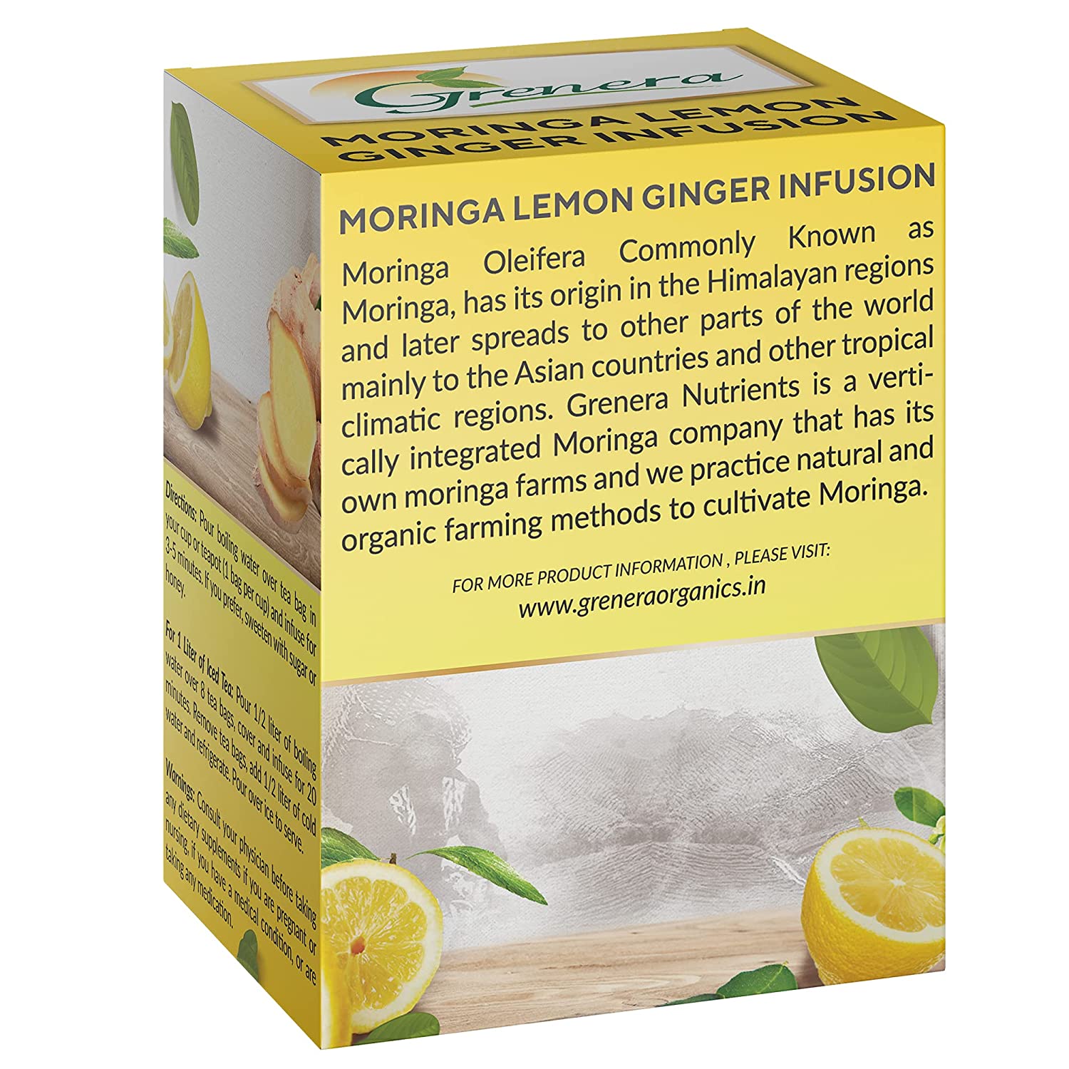 Moringa Lemon Ginger Infusion Tea 20 Bags | Caffeine Free, Staple Free, Made With naturally Grown Moringa Leaves