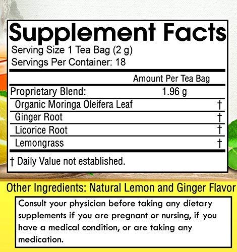 • Made with moringa leaf, ginger root, lemongrass and licorice root