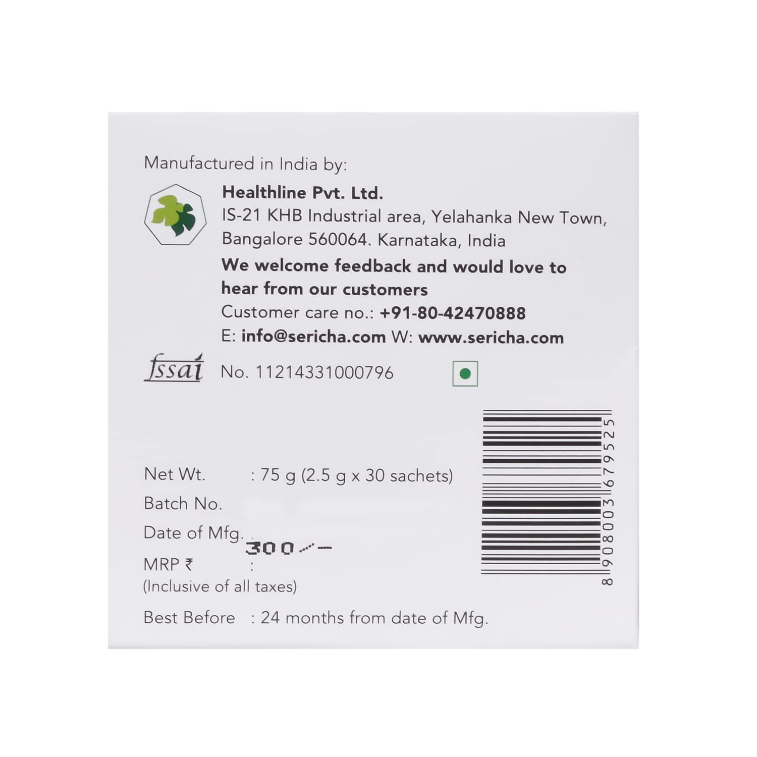 • Sericha Health Benefits: 1) Maintains blood sugar level. 2) Controls blood pressure. 3) Reduces cholesterol and improves blood circulation. 4) Detoxes your body and eliminates toxins. 5) Improves digestion and alleviates constipation. 6) Aids in diet weight loss. 7) Improves immunity. Please note, Sericha is not meant to replace any prescribed medication