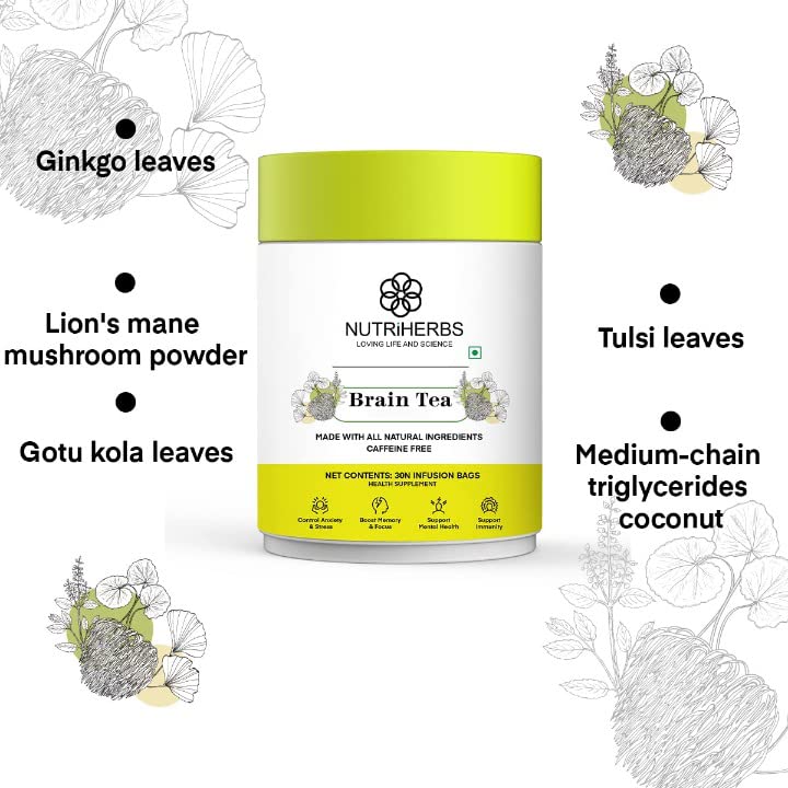 • Nutriherbs Brain Tea is a healthy drink that can be taken to nourish your brain cells. This tea contains high potency herbs that help sharpen the memory, and focus while boosting immune system function and being an all-natural mental rejuvenator with the increased power of recollection for improved concentration skills.