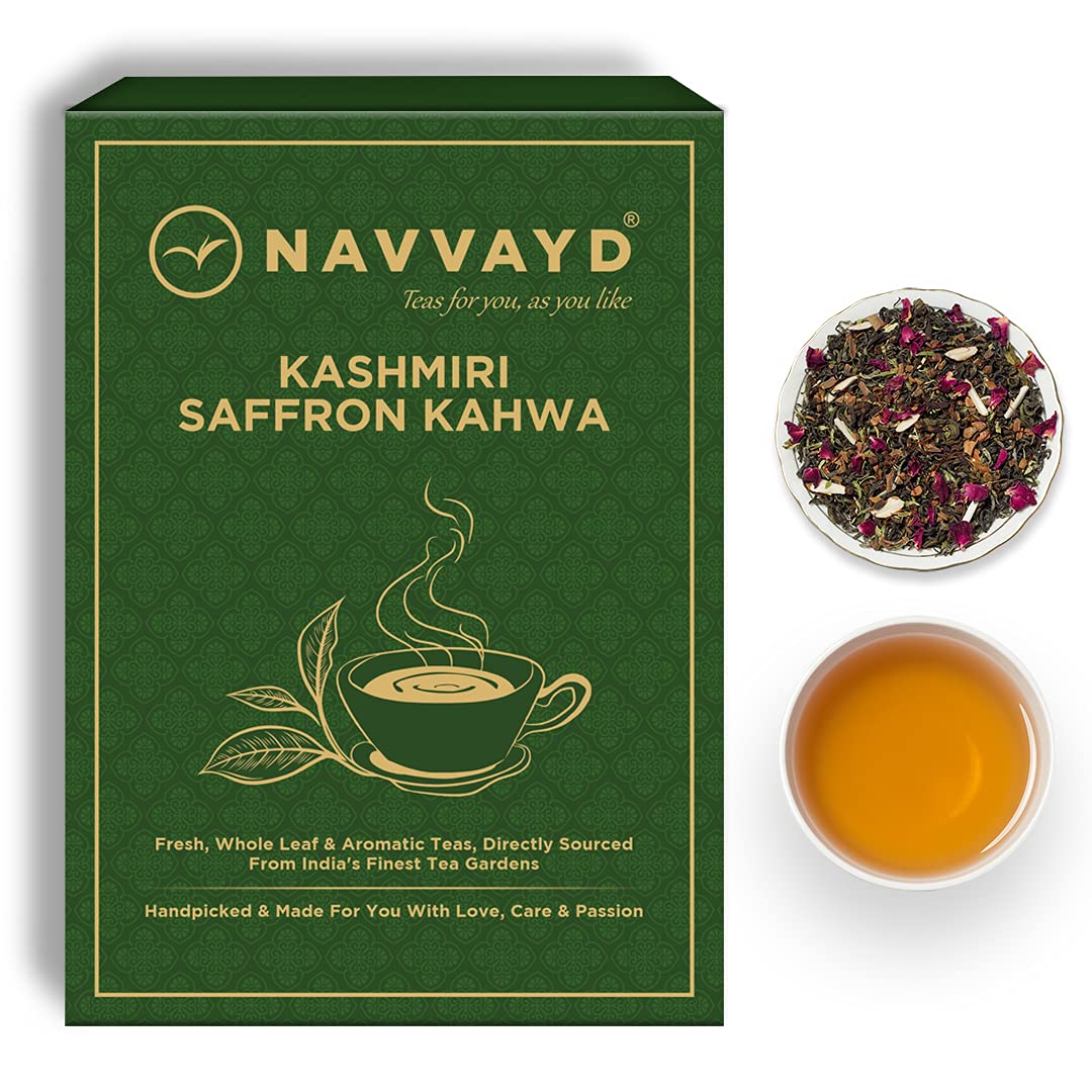Kashmiri Kahwa (100 Gm, 50 Cups), With Real Kashmiri Saffron, Cardamom & Rose Petals, Loose Leaf - Enjoy Hot or Cold