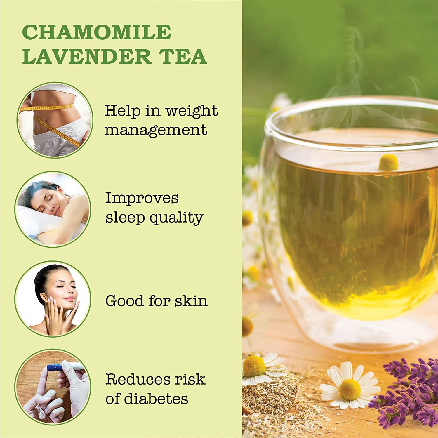 SpecialtyLavender Chamomile Tea with blend of Stevia leaves and Green Tea