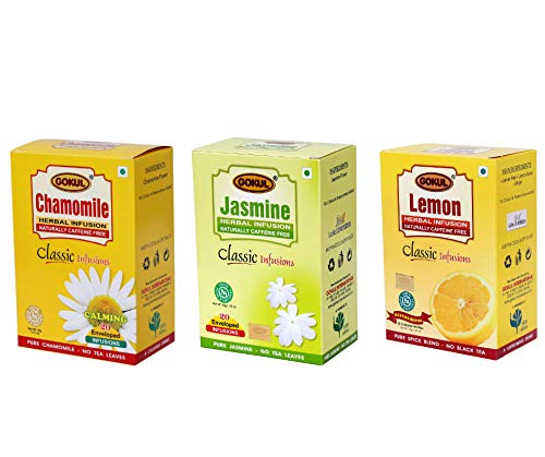 Herbal Infusion Lemon Tea Jasmine Tea Chamomile Tea Immunity Booster Pack of 3 (20 Tea Bags Each)