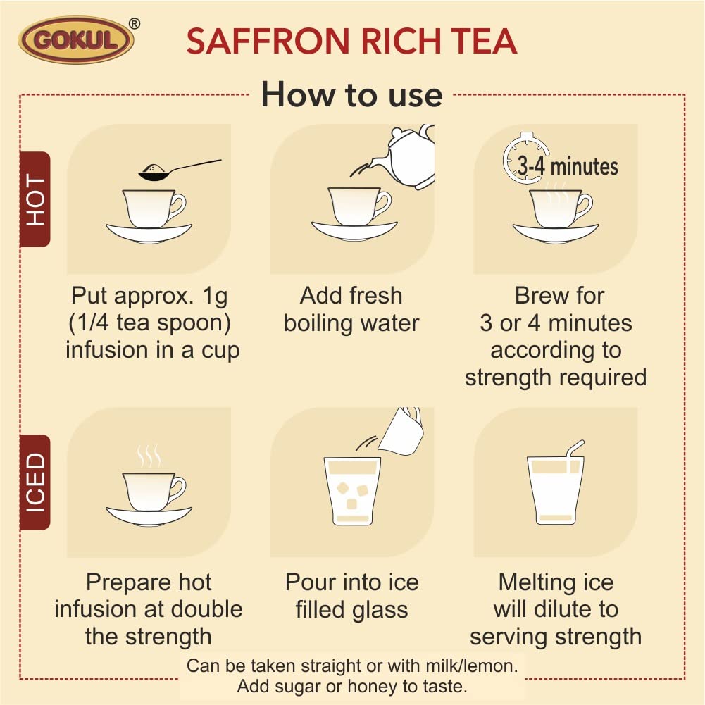 • Health Benefits: Recommended By The Ministry Of Ayush , Gokul Saffron Rich Herbal Infusion Powder are Useful Natural Immunity Boosters.