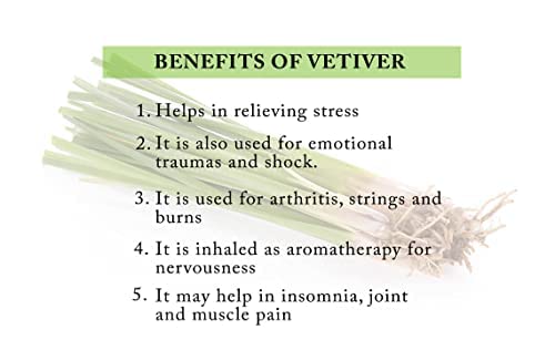 • Vetiver is sometimes inhaled as aromatherapy for nervousness, insomnia, and joint and muscle pain.