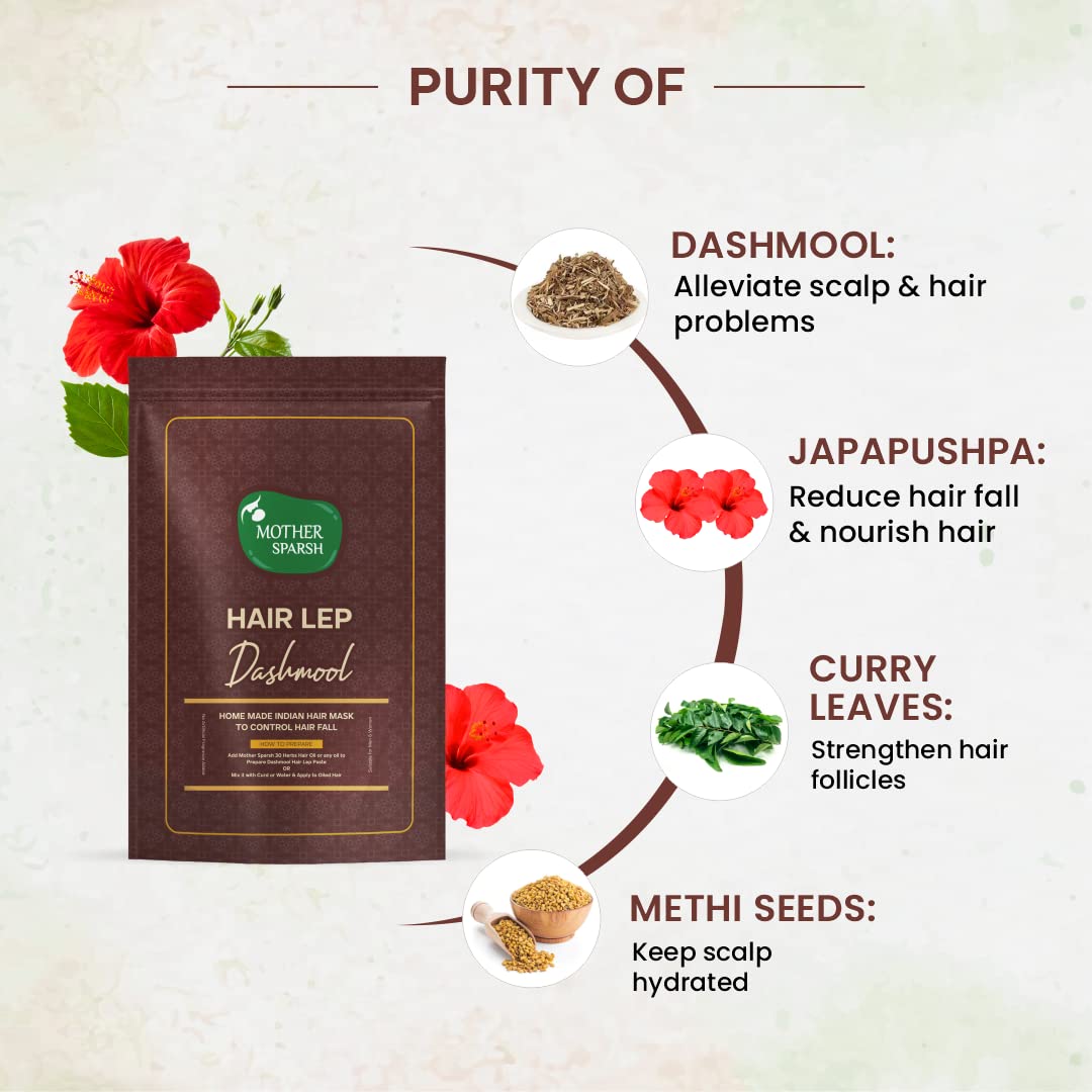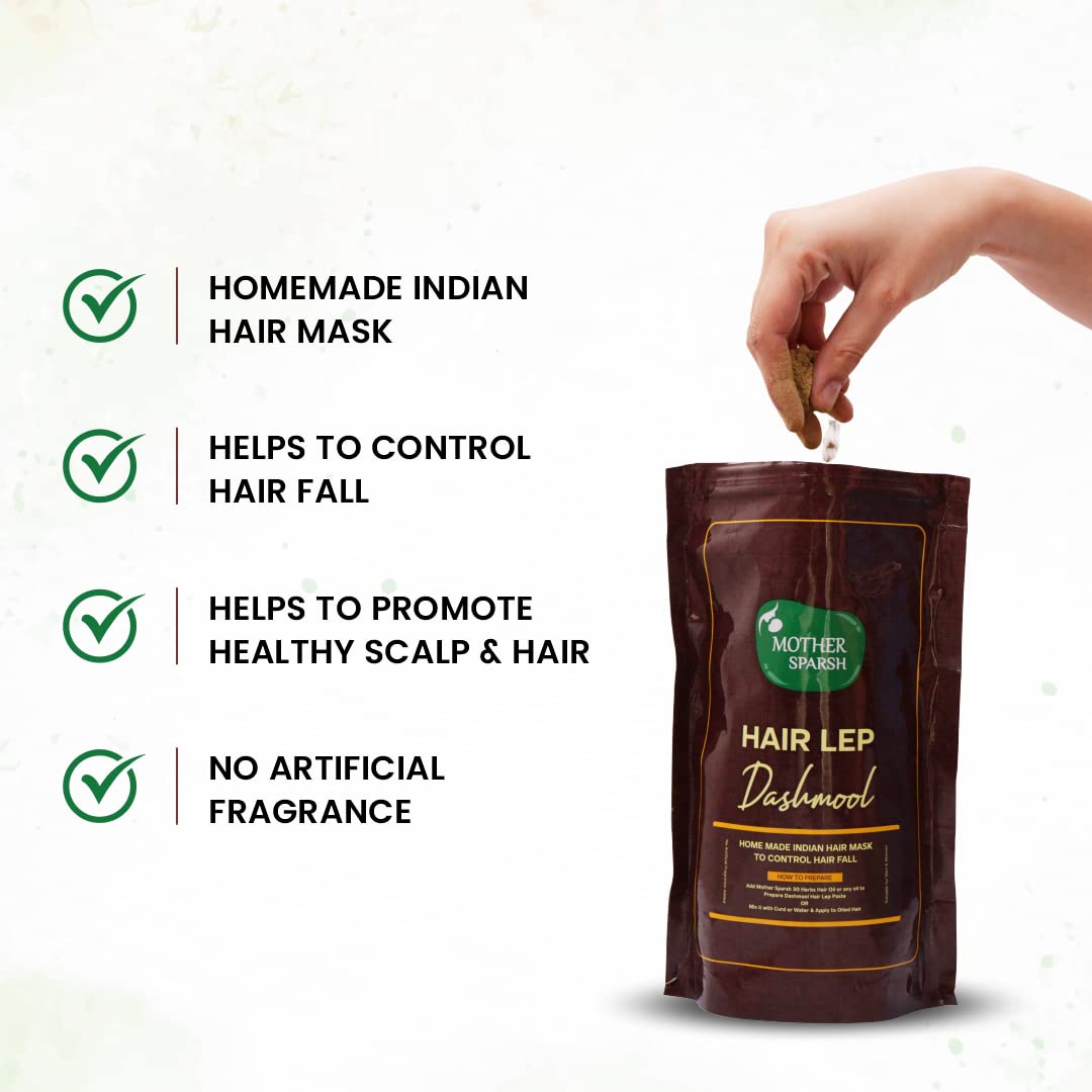 • Home-made Indian Hair Mask that helps control hair fall: Dashmool Hair Lep Powder is a blend of kitchen herbs & roots that many often forget to add to their hair care. The rich infusion of Dashmool, Shikakai, Mulethi & Curry Leaves makes this your all in one Pre-Shampoo Hair Mask to tackle hair fall.