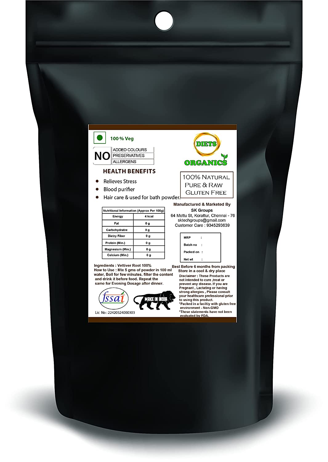 • Pure Vettiver Powder || Vegetarian | Used for all gender | Chemical free | No added Preservatives