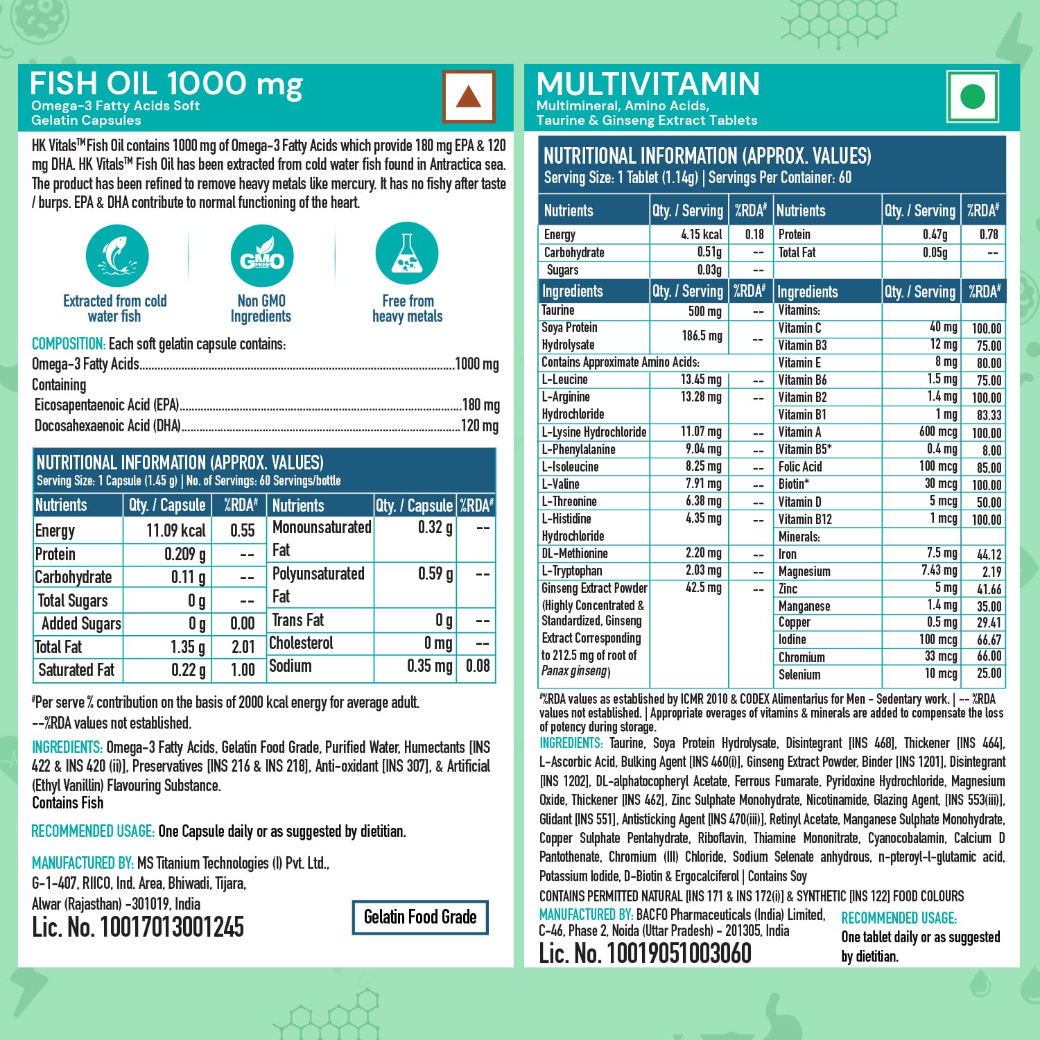 Multivitamin and Fish Oil Combo (60 Multivitamin Tablets & 60 Fish Oil Capsules) for Women & Men
