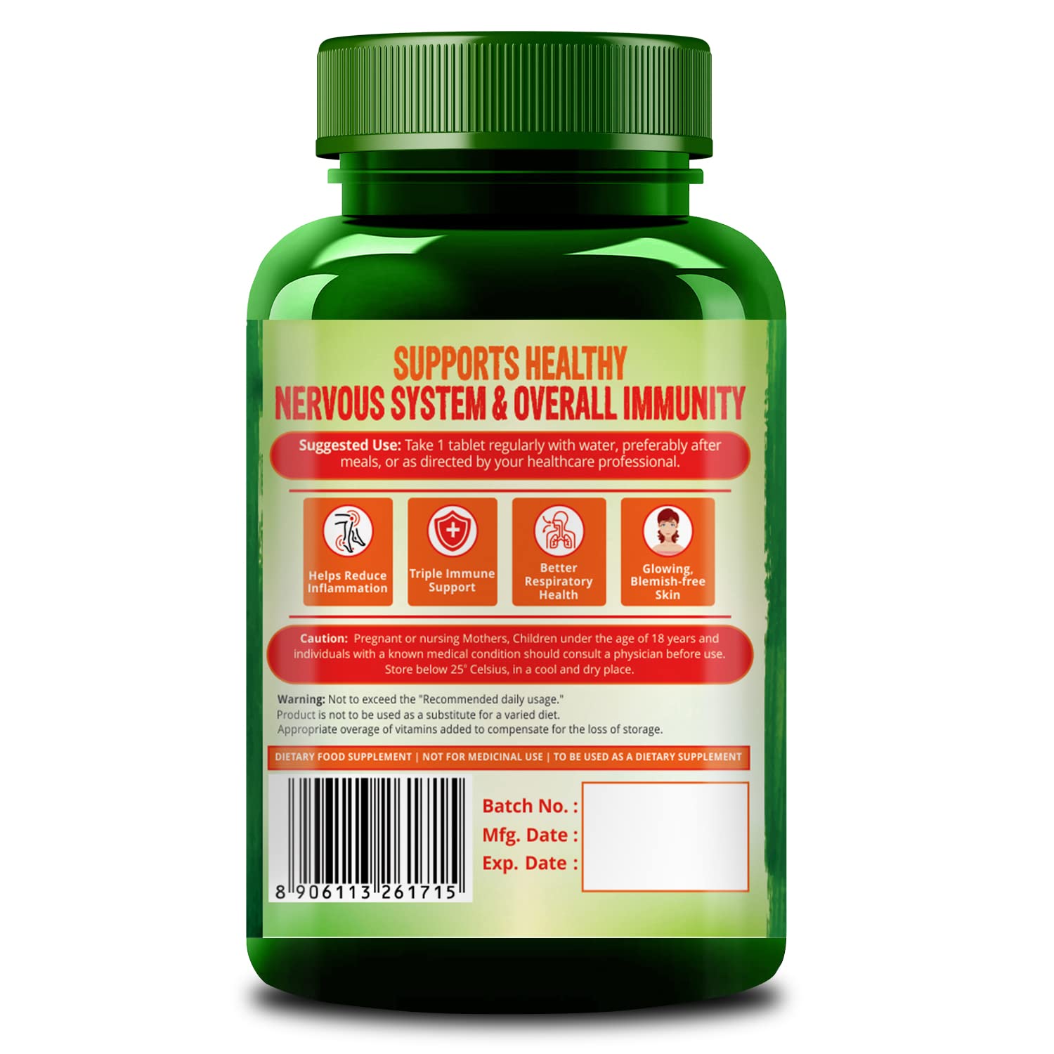 • STRENGTHENS IMMUNE SYSTEM: Best known for having a positive effect on the immune system, these tablets neutralize oxidative stress, helps in microbial killing, and encourage the production of white blood cells, helping your body create a protective shield against infections.