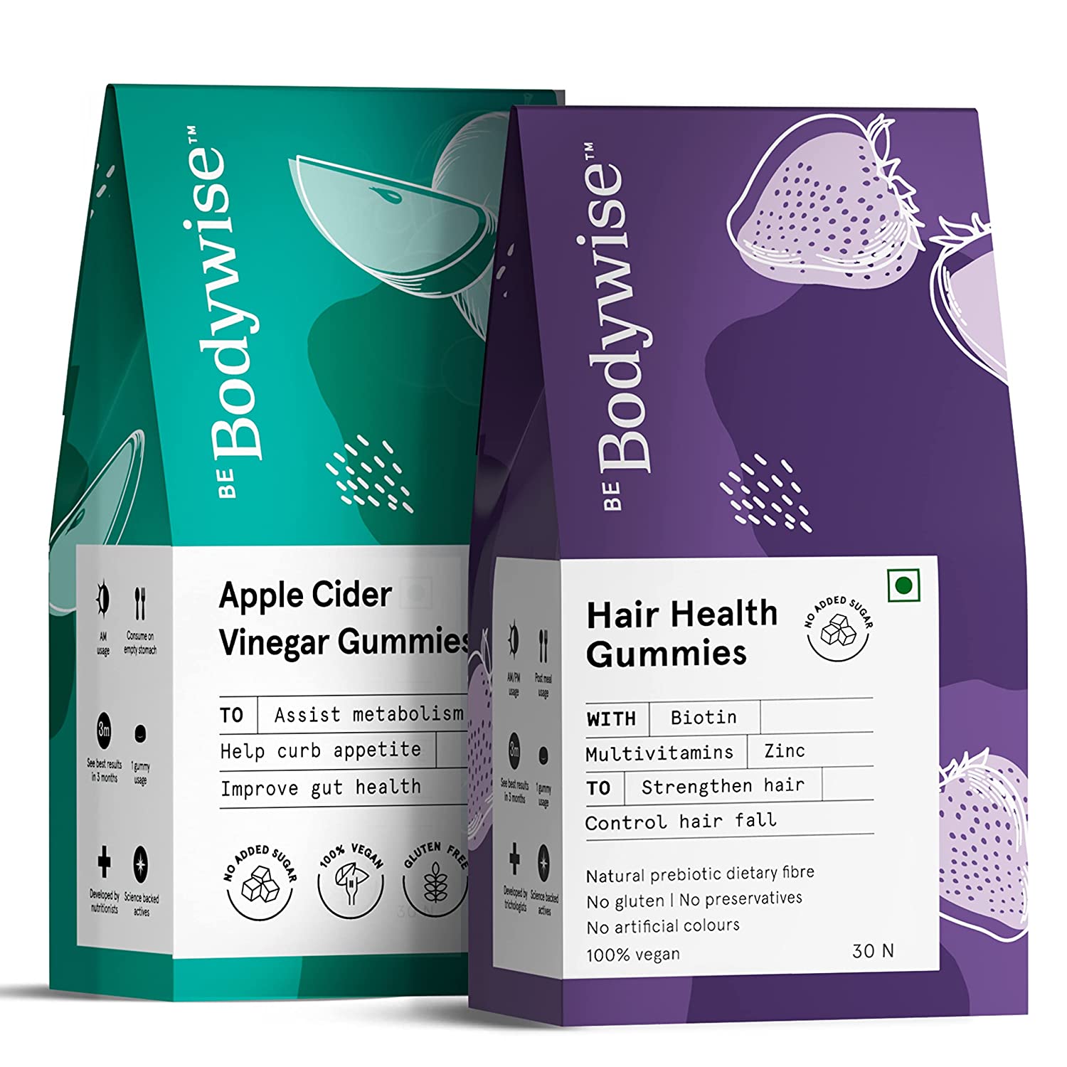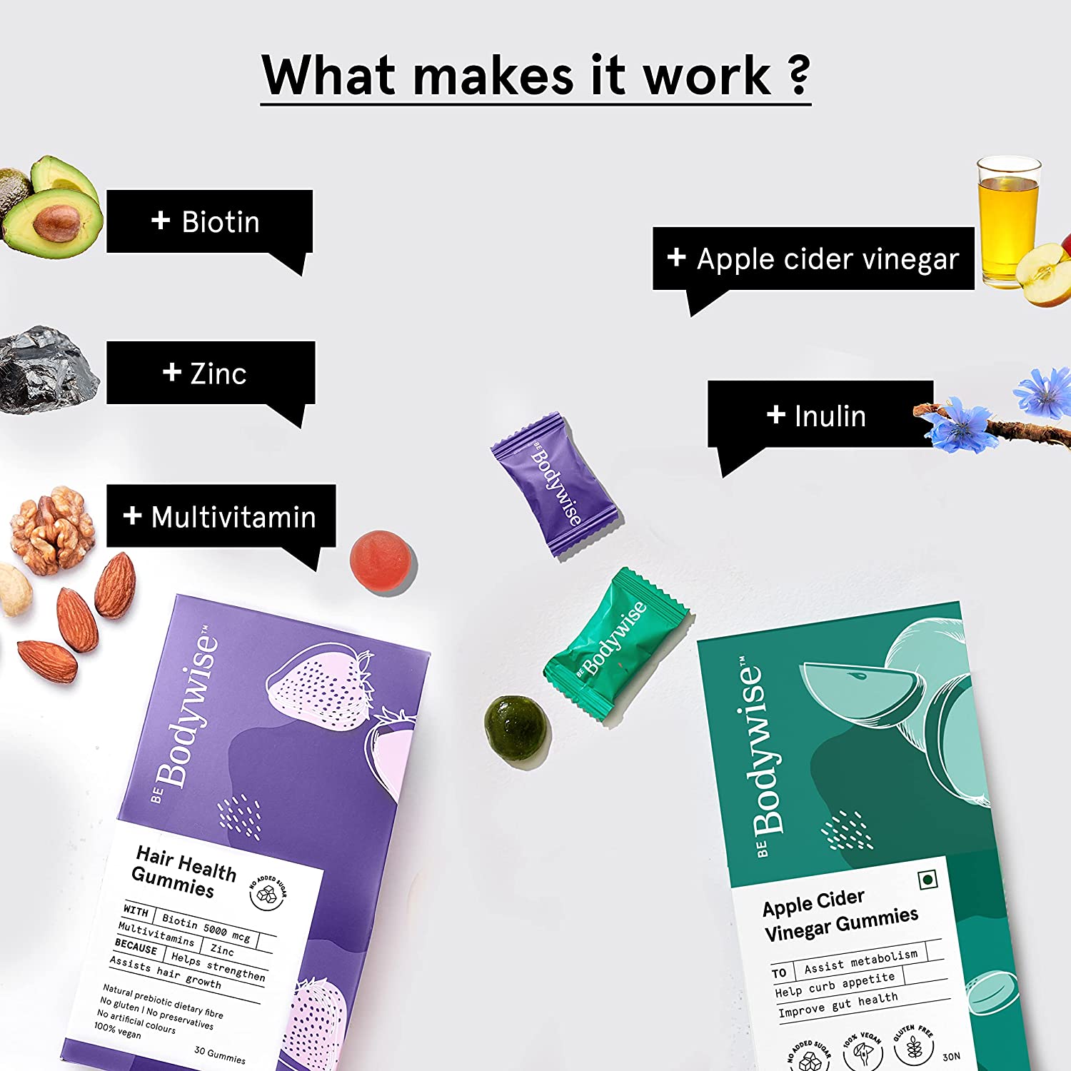 Healthy Gummies for Hair & Body |30 Days Pack|Apple Cider Vinegar Gummies,Biotin Hair Gummies|High Potency Biotin Supplements for Stronger Hair| Reduce Hair fall|Improves Digestive Health