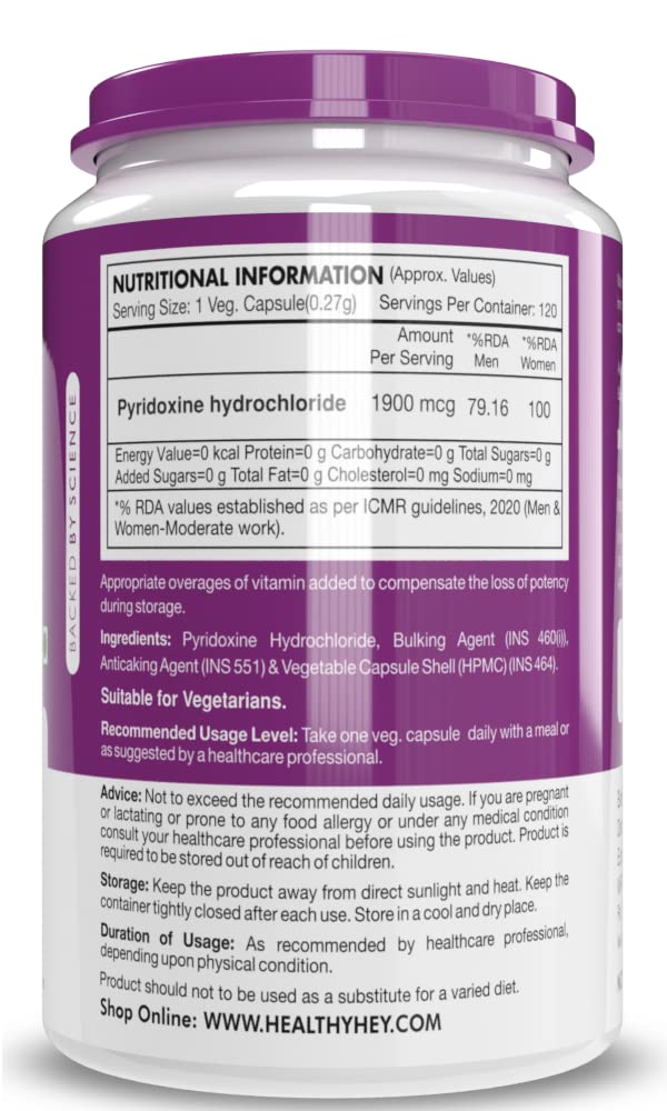 Vitamin B6 Pyridoxine -120 Veg. Capsules