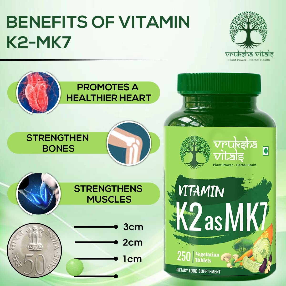 • Vruksha Vitals Vitamin K2 MK7 tablets are plant based and made from Natto (Japanese Fermented Beans). 100% Vegan and Suitable for vegetarians & vegans both.