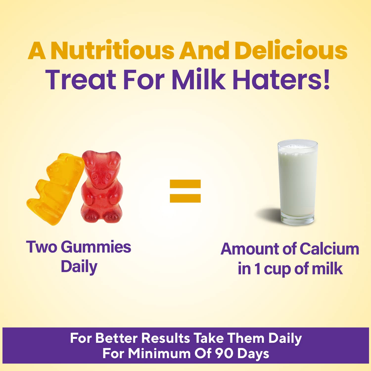 • THOUGHTFULLY FORMULATED FOR MILK HATER KIDS: Our Calcium and Vitamin-D gummies are scientifically formulated by experts and contain 250 mg Calcium, 140 mg Phosphorus and 400 IU of Vitamin D to ensure a healthy growth of the little developing brains and bodies and are an ideal choice for picky eaters and milk hater kid